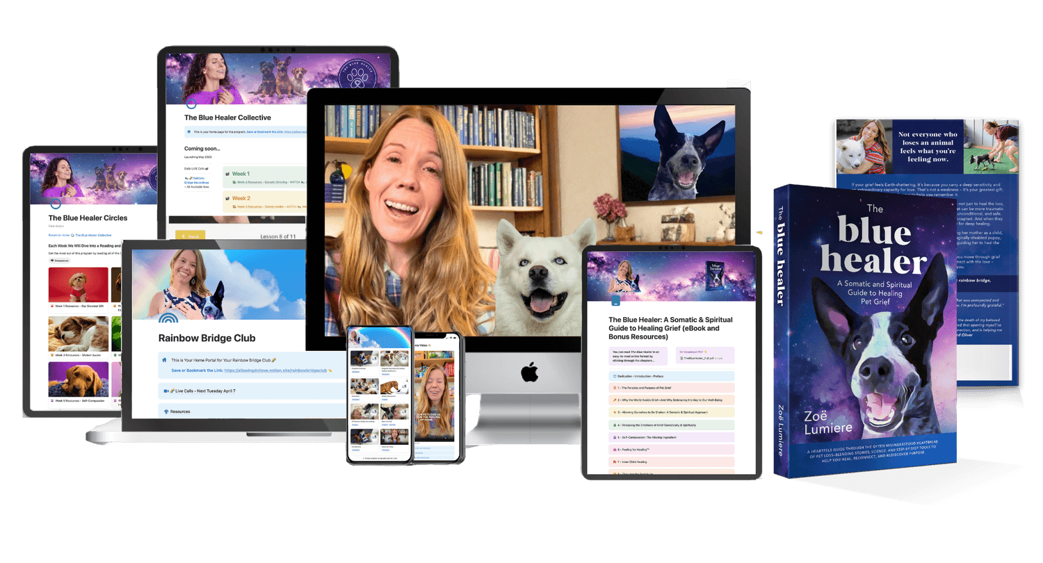 Learn more about the simple, compassionate approach in The Blue Healer that is helping grieving pet parents release overwhelming grief, reconnect with the love of their soulmate animals, and experience an ongoing bond that continues beyond loss — even if you feel completely heartbroken or unsure how to heal right now.