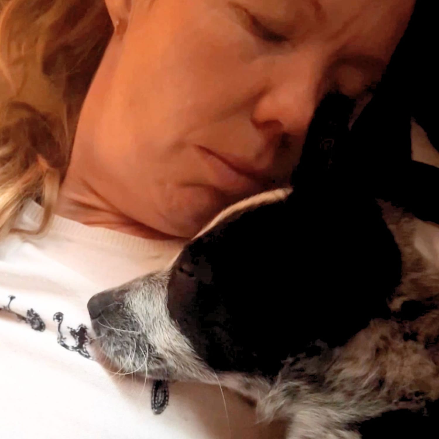 My favorite time came after our morning bathroom dance. I’d bring her back to bed, and she would nestle into my side. I would half-meditate, half-replace the chew toy in her mouth every few seconds, because she couldn’t hold it herself. Those mornings were quiet, tender, peaceful. I miss them more than anything. I knew she felt safe and loved.