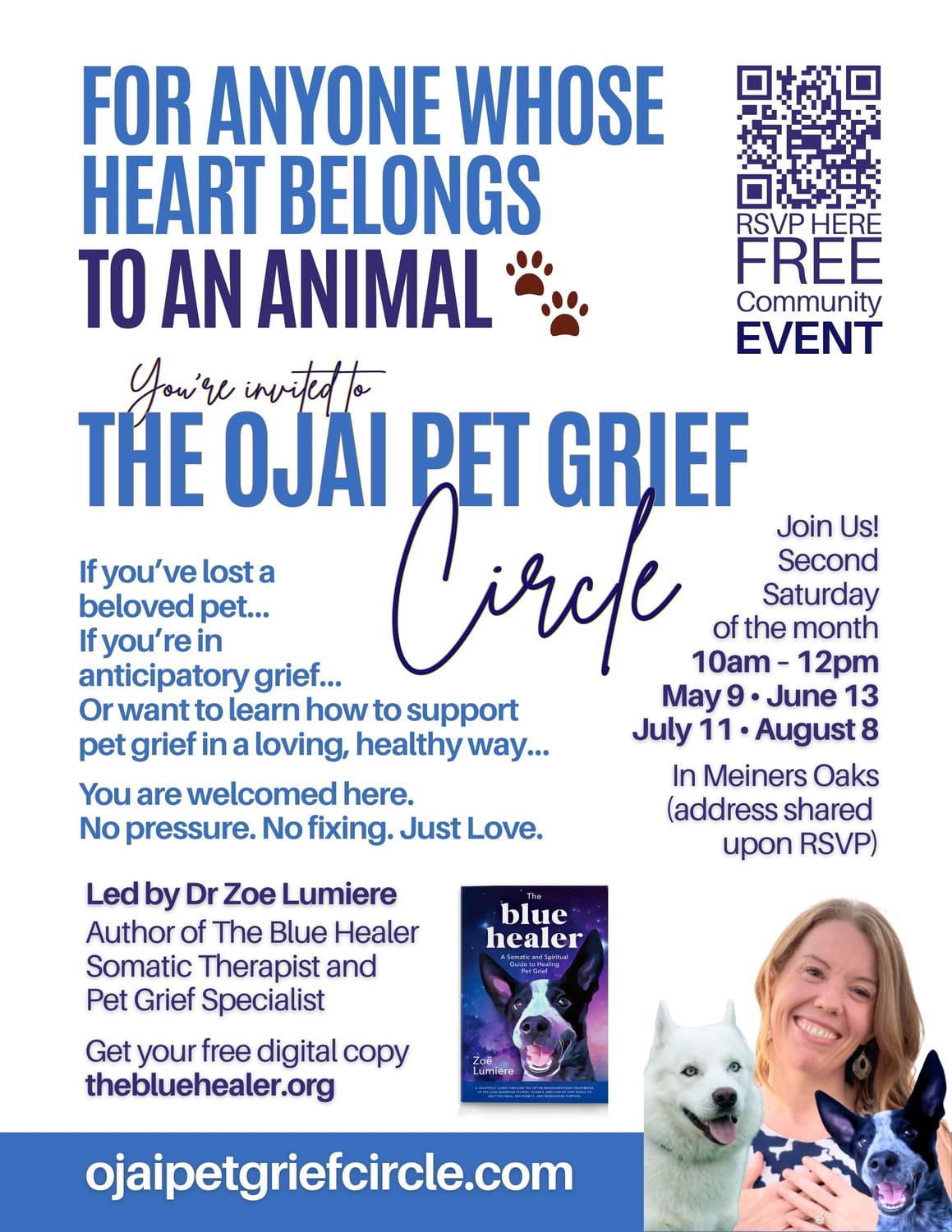 Dr Zoe Lumiere leads a gentle, live gathering where grieving animal lovers can come together to be supported, share openly (or simply listen), and learn strategies for pet grief.